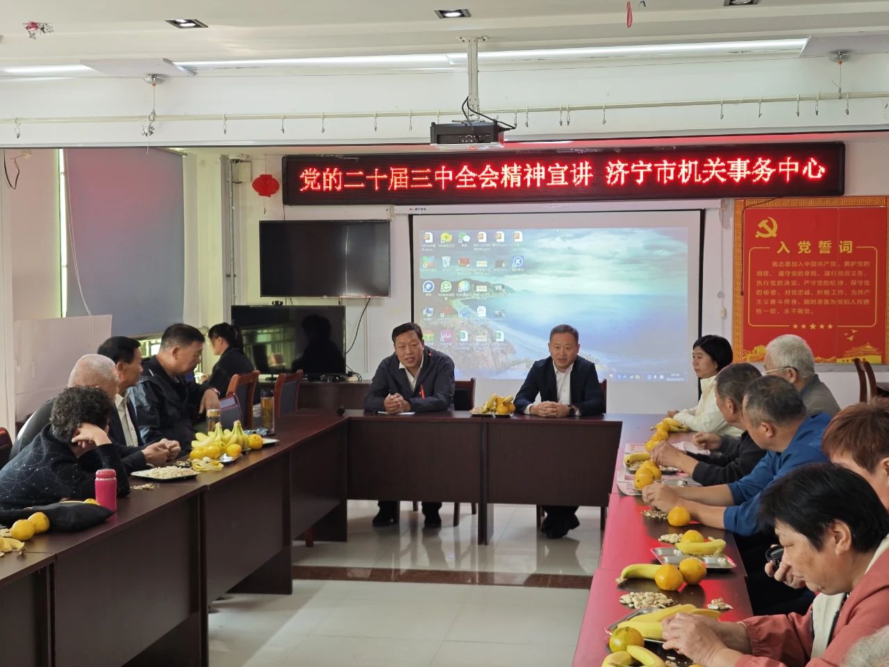 近日,市機關事務中心赴越河街道和平街社區開展“情暖金秋 愛在重陽”茶話會暨黨的二十屆三中全會精神宣講活動,中心黨組書記、主任李成山與社區黨員群眾共度重陽節并講授了一堂生動的宣講課。
