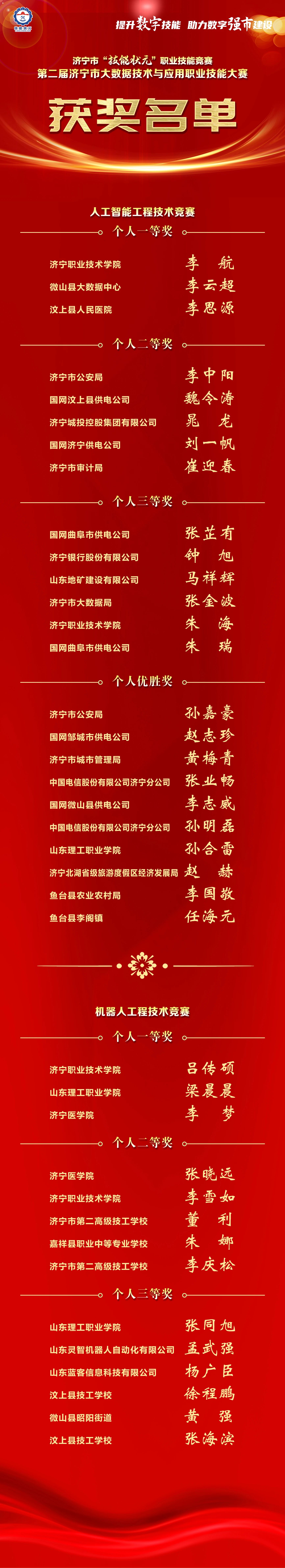 第二屆濟寧市大數據技術與應用職業技能大賽獲獎名單公布!